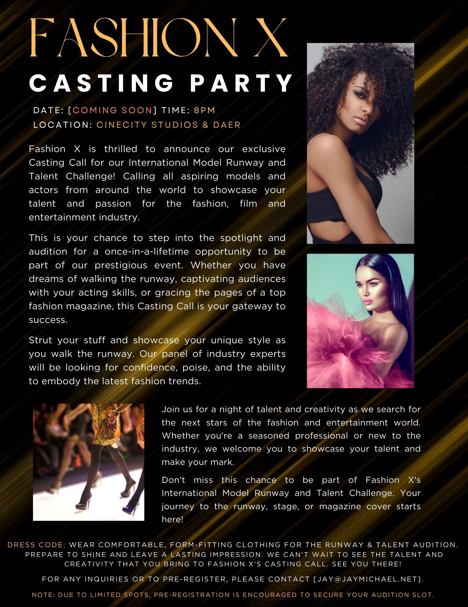 Our International Model Runway and Talent Challenge, is a professionally produced runway experience spotlighting emerging and established models, designers, and creative talent. The challenge serves as both a showcase and a discovery platform for the next generation of fashion and entertainment professionals. The winners of the challenge will be featured in our VIP Fashion Show Experience, interviewed on the Cinematic Couture Podcast, and featured in our Fashion X Magazine. Your journey to the runway, stage, or magazine cover starts here!